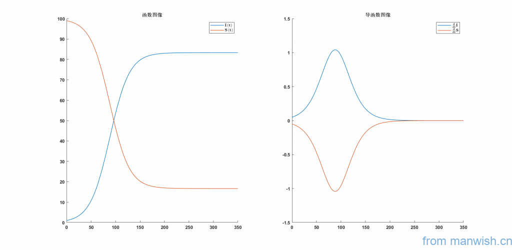 为分析何时进入稳态,故解导函数等于零(实际上该数学模型永不为0,这里以\( {10}^{-3}\)代替),得