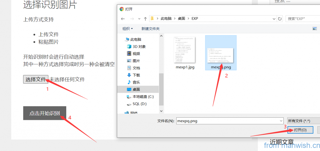 在网页内直接按Ctrl+V将通过截屏等方式复制的图片粘贴到网页,网页会显示粘贴的图片,点击“开始识别”即可。